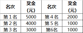 1.国际邀请组前6名(1.6万元),奖金分配如下