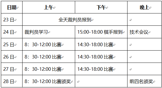 (二)组委会提供比赛服装,棋手必须着统一比赛服装参加开、闭幕式、比赛和推广活动。