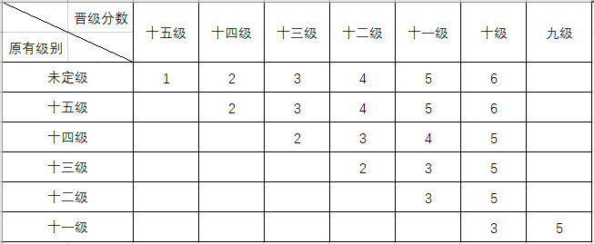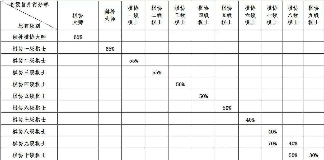(二)十级及以上的晋升规则按照《中国国际象棋协会棋士等级称号条例》