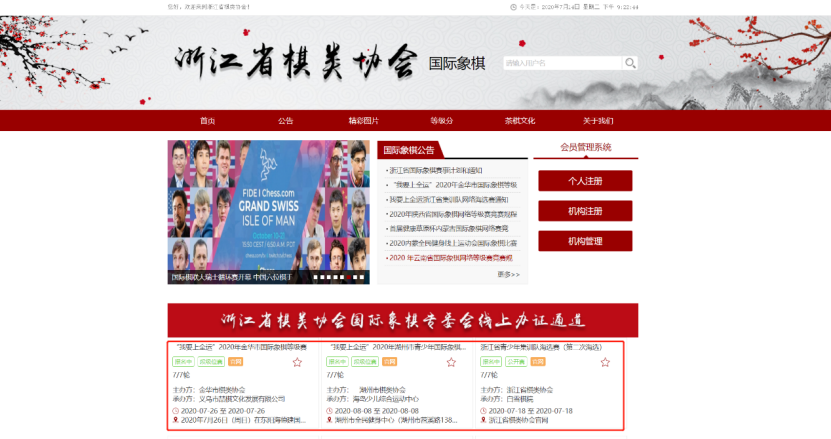 1. 进入协会官网国际象棋页面:http://zjsqlxh.com/guojixiangqi/