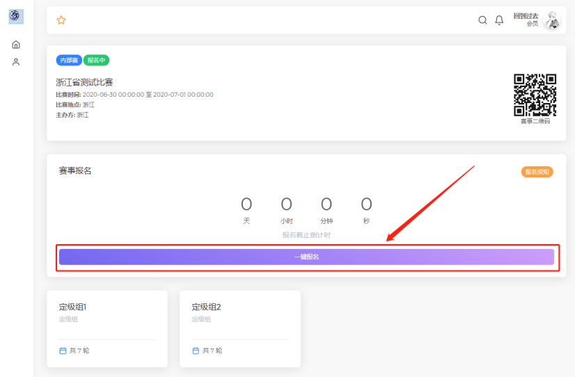 1. 扫码进入比赛页面,点击一键报名按钮,或扫描二维码: