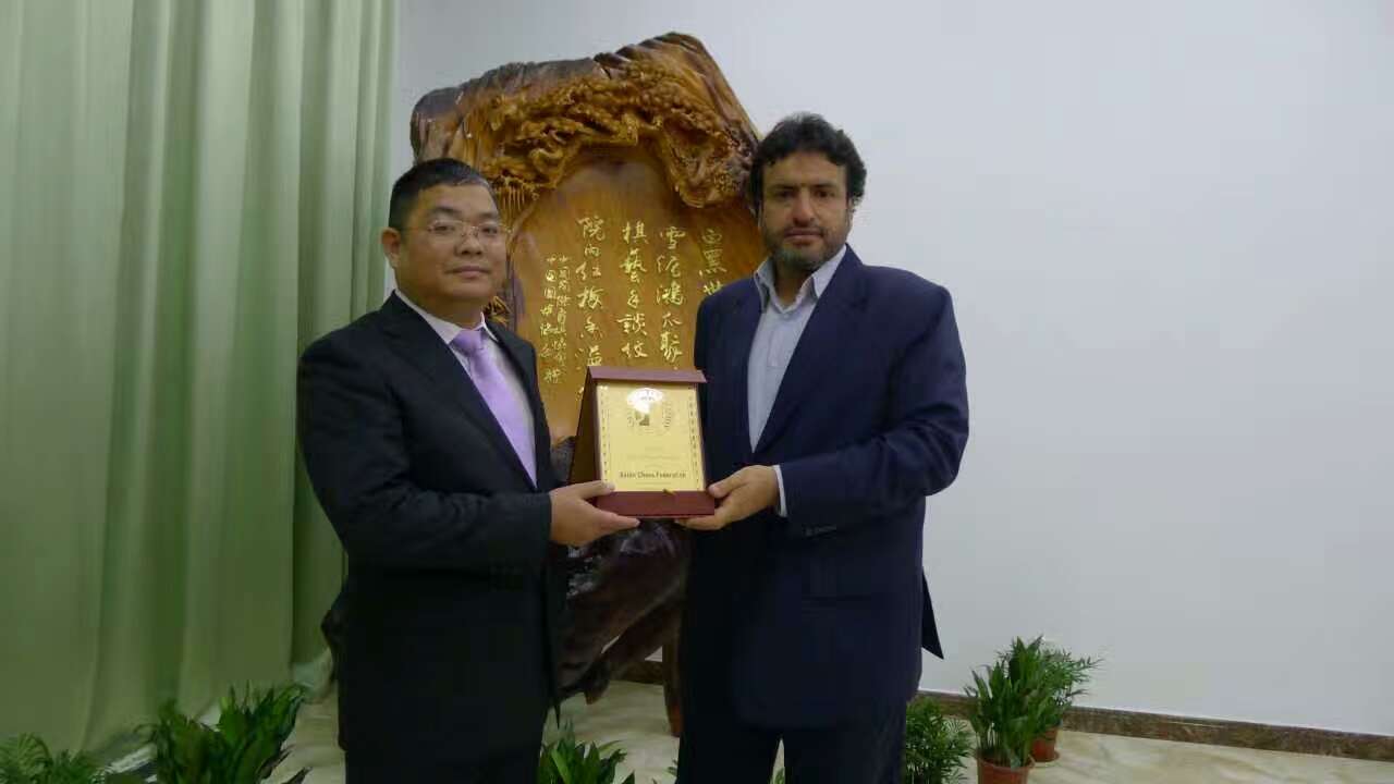 (哈什姆先生代表亚棋联向白雪棋院董事长白洪闽授牌)