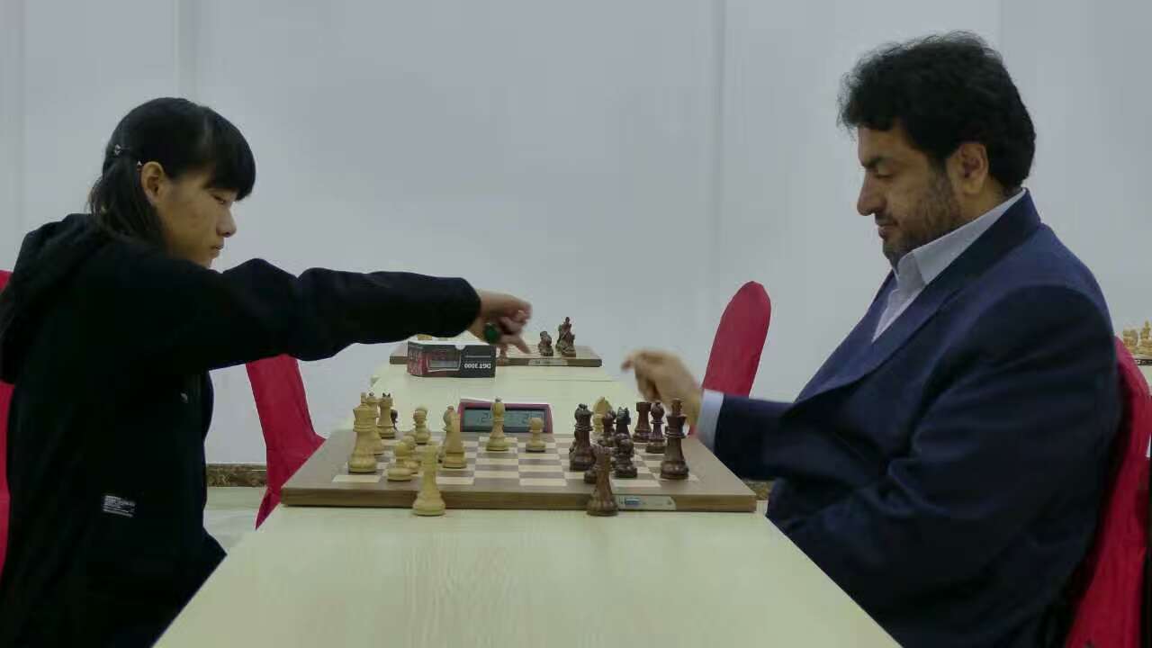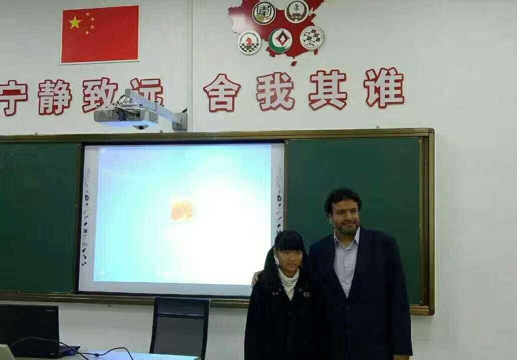 (哈什姆先生与刚刚参加了U14亚团赛的白雪切磋棋艺)