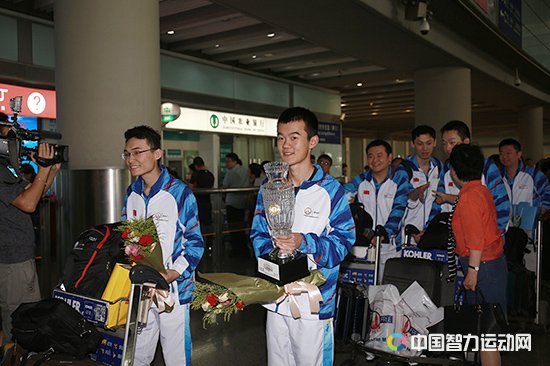 中国智力运动网讯 6月28日,由国家队总教练叶江川的带领,在世界团体锦标赛上夺金的中国男队和拿下银牌的中国女队喜气洋洋地归来。在首都机场,见到亲人的代表团七嘴八舌谈了参加世团赛的感受。