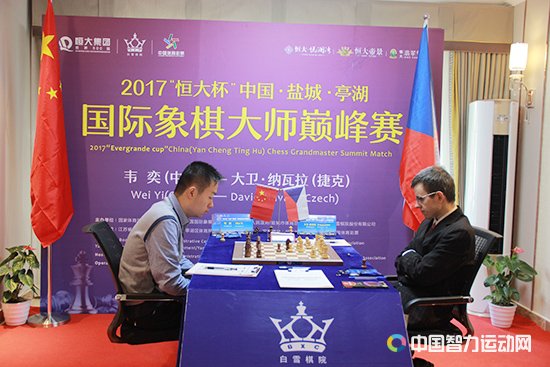 中国智力运动网讯 2018年元月1日,“恒大杯”中国(盐城)国际象棋大师巅峰赛在江苏盐城亭湖区恒大悦澜湾售楼处展开了第2轮角逐。在一场四平八稳的对局中,韦奕和捷克棋手纳瓦拉战成平局。