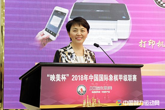 国家体育总局棋牌运动管理中心副主任、中国国际象棋协会副主席、国家队总教练叶江川在致辞中,感谢了多年来映美公司对中国国际象棋事业的支持,并对今年“映美杯”甲级联赛的筹备情况进行了介绍。叶江川表示,从2014年映美控股有限公司助力甲级联赛以来,我国棋手连续4年夺得世界重量级比赛的冠军,并提前锁定2018年的世界棋后桂冠落户中国,这与映美给予的支持密不可分。