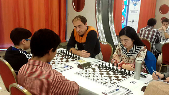 昨天沈阳人品爆发。她执黑对印度的国际特级大师沙迪潘,战至车象对车马残局,沙迪潘刻意进攻,沈阳针对白棋的过份着法,展现了良好的残局基本功,黑王占据中心与车马配合,控制白王的出路,最后沈阳的中心通路兵即将升变为皇后,黑胜。