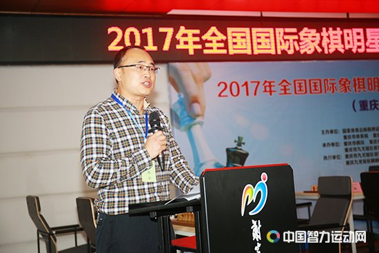 九龙坡区体育局局长马红兵介绍了九龙坡区国际象棋之乡的发展历程和成果。