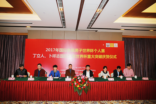 中国智力运动网讯 10月27日,丁立人卜祥志国际象棋世界杯重大突破庆贺仪式在山东潍坊齐鲁酒地举行。