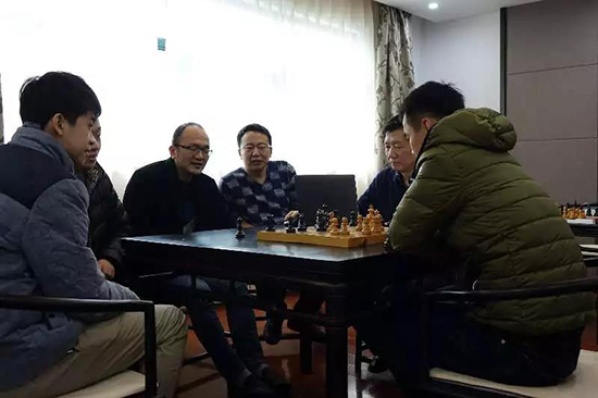 毕竟训练是一件比较枯燥的事情,为活跃气氛,张鹏翔提出用英语讨论棋。丁立人还是比较习惯的,大概和外国棋手讲地多了,也没觉得什么,韦奕和卢尚磊说着说着就笑场了。