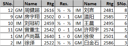 明天14:30将进行本次个人赛的第5轮,具体对阵如下: