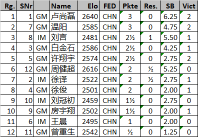 卢尚磊本轮的对手是老将徐俊。两人经过争夺,最终形成车象三兵对相马三兵的残局。卢尚磊的针对对手叠兵的弱点展开攻击,最终成功吃掉对手一兵,并且造出边线通路兵。徐俊努力挽回颓势,无奈山穷水尽,于是起身认负。