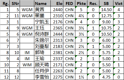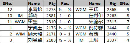 女子方面跟明天相比显得稍微温和一些:只有3盘棋分出胜负。