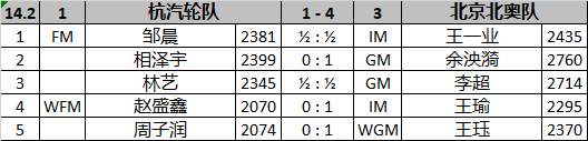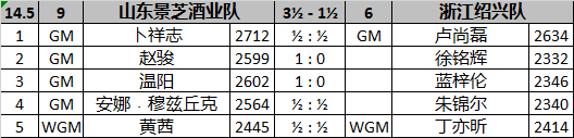 一支是年轻的升班马,一支是老牌劲旅,两队的实力差距显而易见,1比4的比分看起来悬殊,却也是双方实力的真实反应。小将林艺垫白和李超打平也是可圏可点之作。