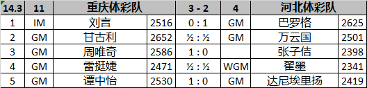 同样都是哀兵,河北就不像广东这么幸运。尽管外援巴罗格战胜了刘言,却禁不起老到的周唯奇战胜张子佶;谭中怡面对外援达尼埃里扬毫不手软,为重庆队取得最终的胜利建功立业。