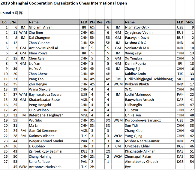 最终轮比赛将于9月27日上午9时开战,朱锦尔将先手对阵俄罗斯棋手瓦蒂姆,伊朗棋手阿瑞纳对阵乌兹别克斯坦棋手奥提克。