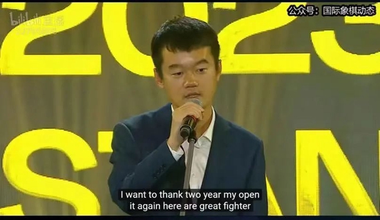 仪式的关键阶段是国际棋联主席阿尔卡季·德沃尔科维奇应邀发言,他祝贺丁立人“取得了非凡的胜利”。