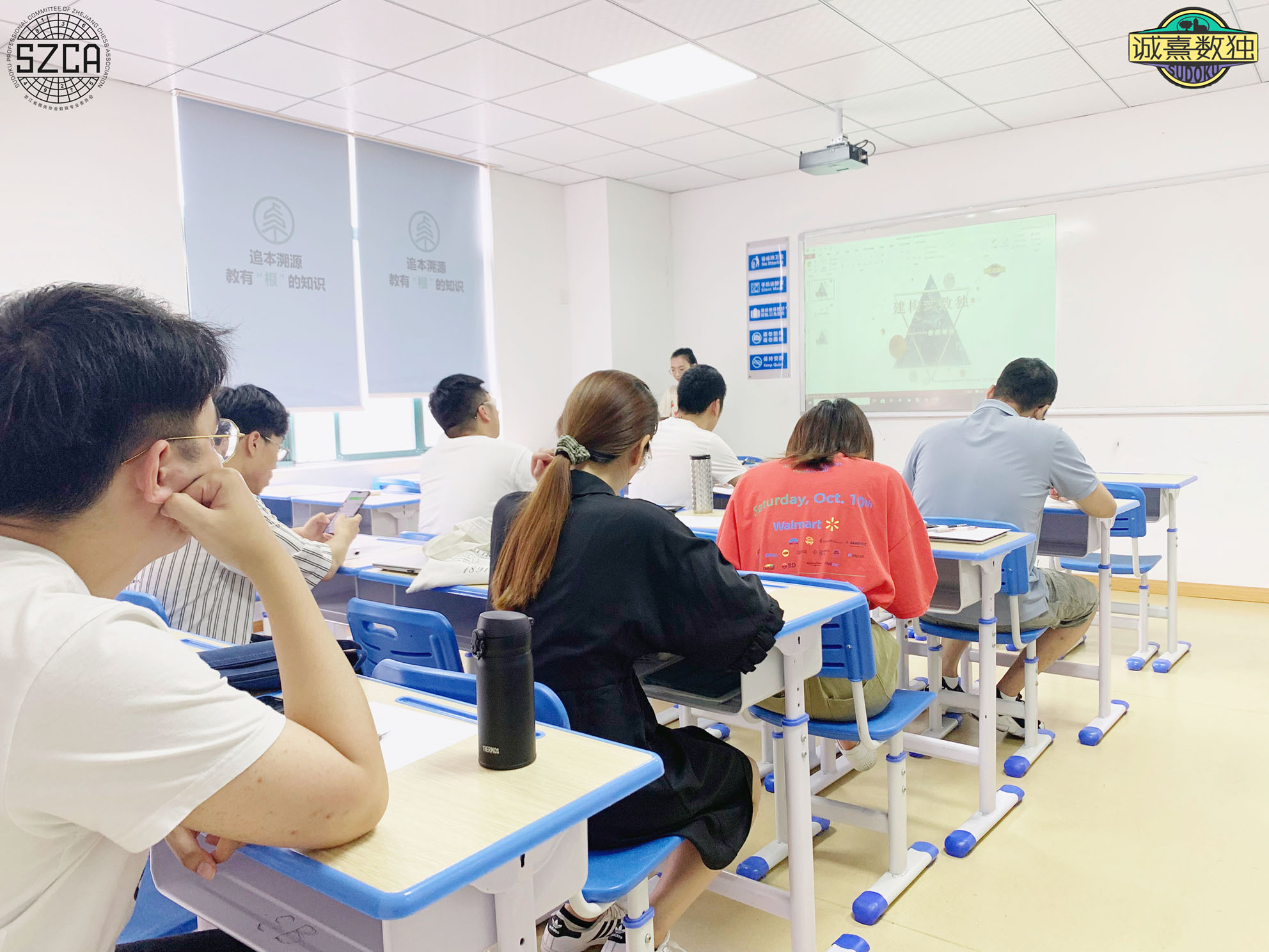 卓学堂数独教练资格培训中,参加培训的老师们听课一丝不苟、严谨记下教授的每一个知识点,不徐不疾地进行着知识点的强化练习,相信在专业的高强度的培训后,卓学堂的老师们都能够通过考核,顺利取得数独教练资格证书。