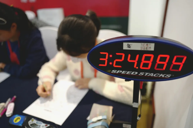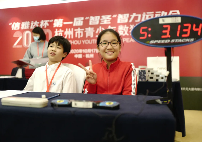 本次赛事还有一大亮点就是全部采用了专业的手拍计时器,能够清楚地看到每一位选手的比赛用时,PK率先完成的选手需要立即拍打计时器以记录时间,另一位选手可以继续答题,直到裁判员宣布优先完成的选手正确无误时,PK结束。