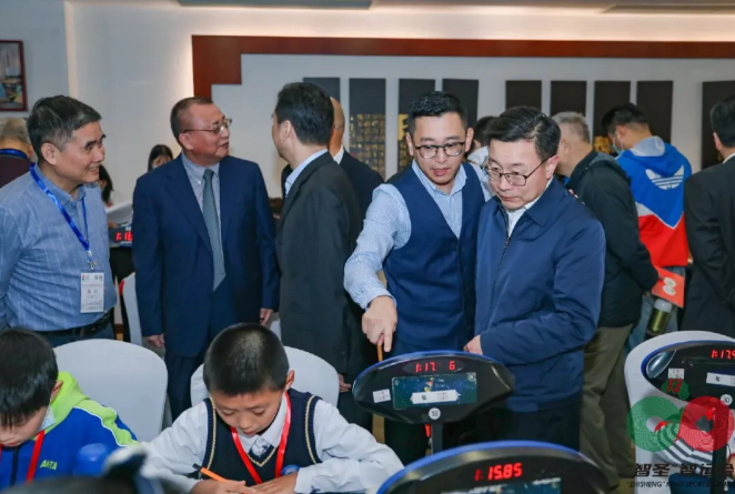 【上图为王国平书记(右二)、浙江省体育局局长郑瑶(右一)等领导莅临现场,感受选手风采】