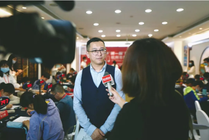 (上图为数独专委会秘书长朱晨乐接受各媒体采访)