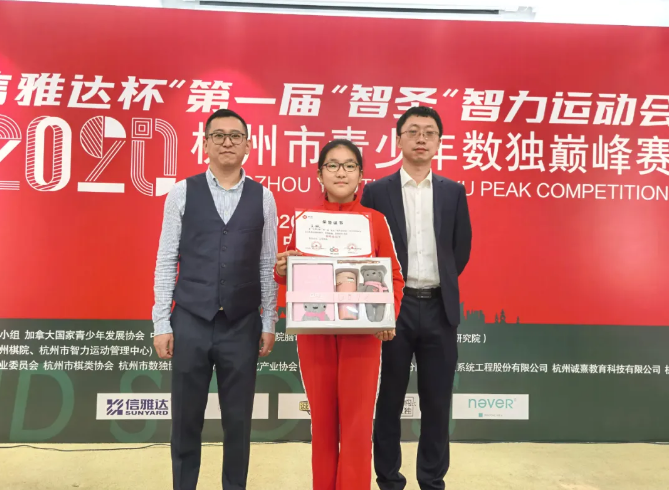 浙江省棋类协会数独专业委员会常务副会长兼秘书长朱晨乐以及中科院深圳脑研究所的蔚鹏飞博士为参赛选手们进行颁奖。