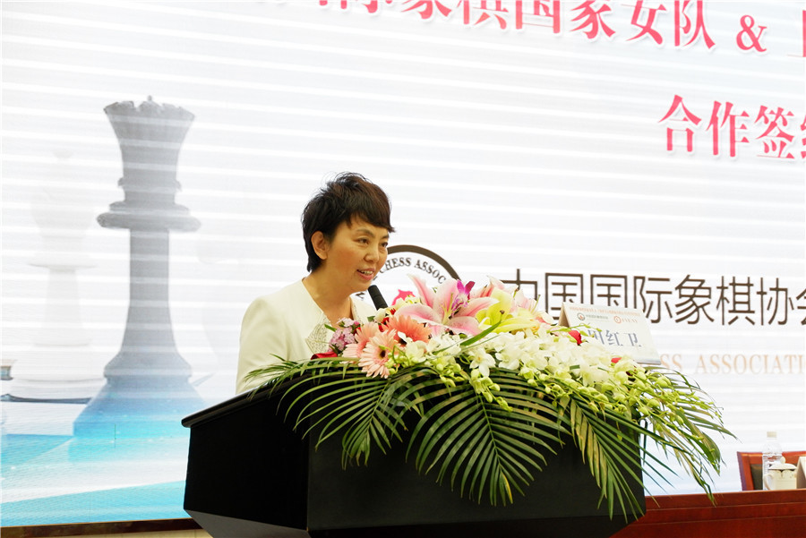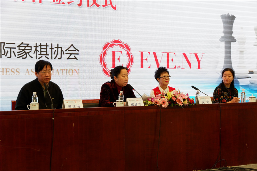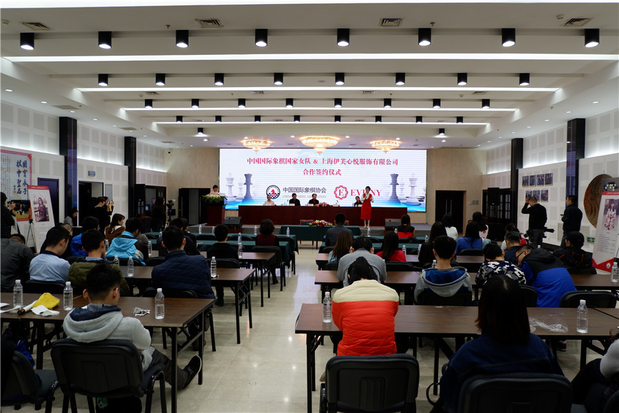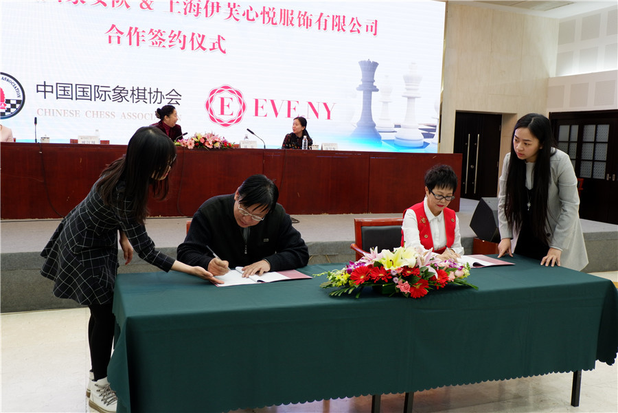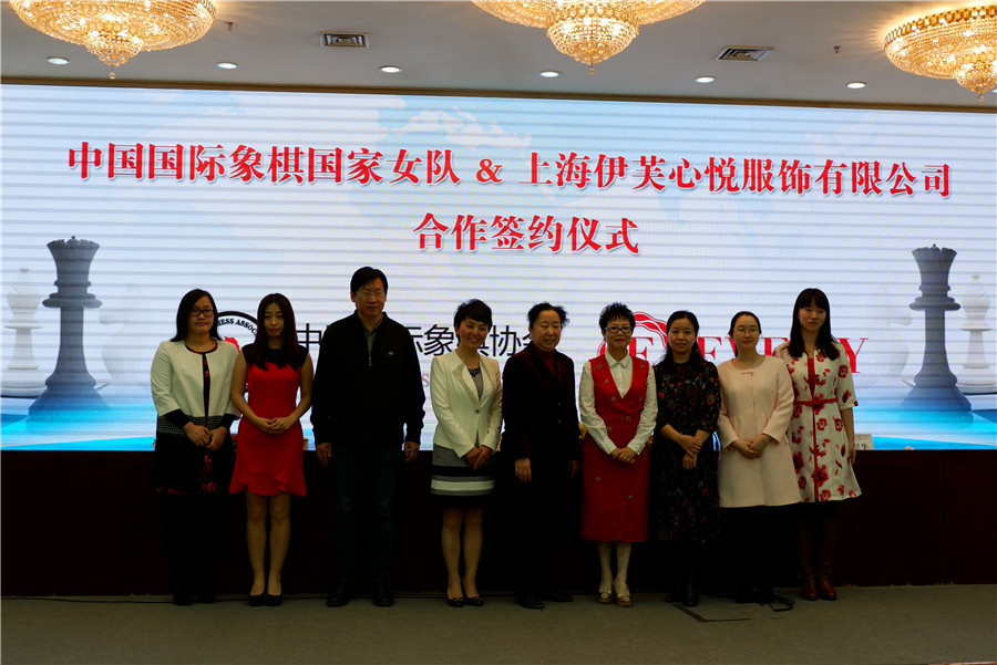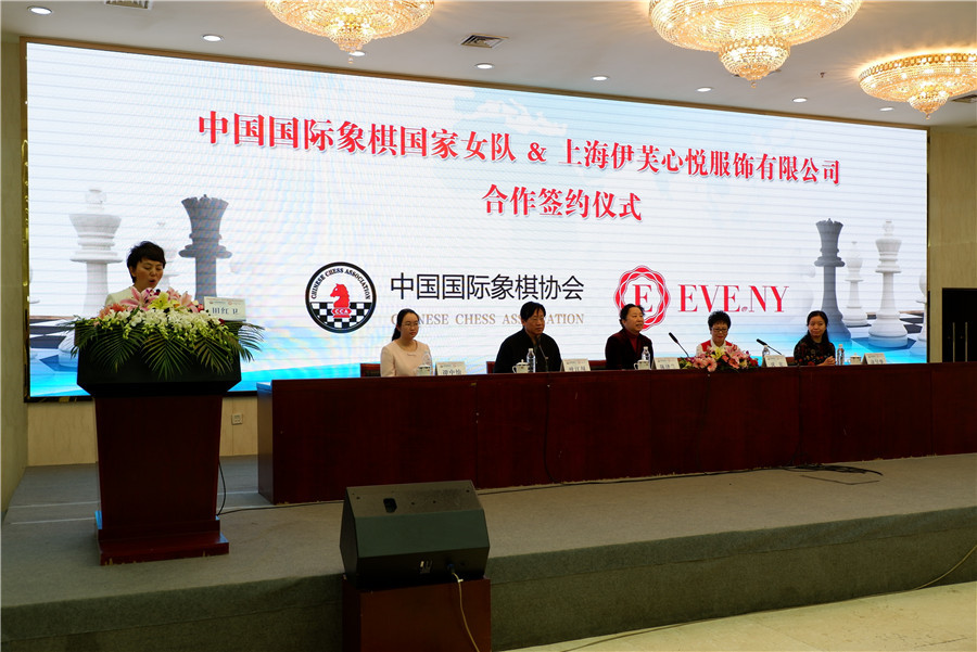 国象女队与心悦服饰签约仪式 谭中怡亮相