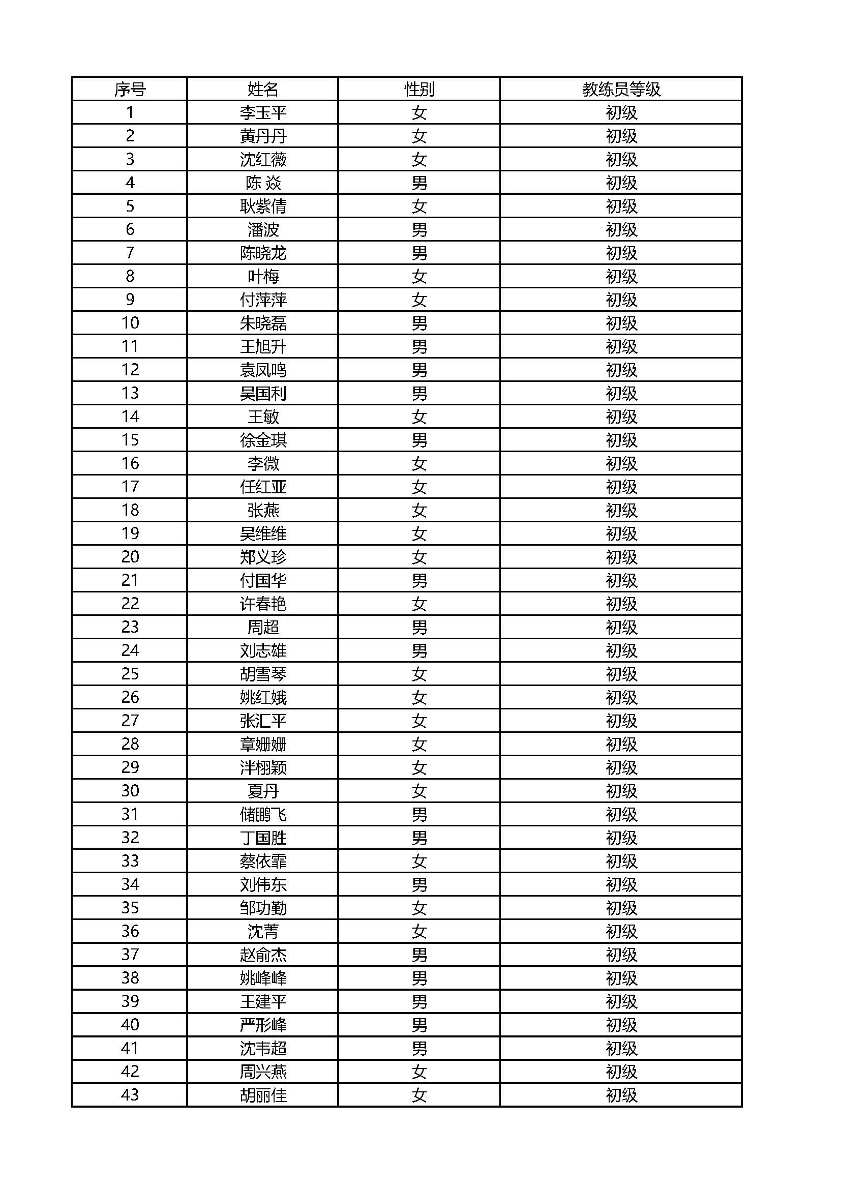 浙江省五子棋初级教练员公示名单