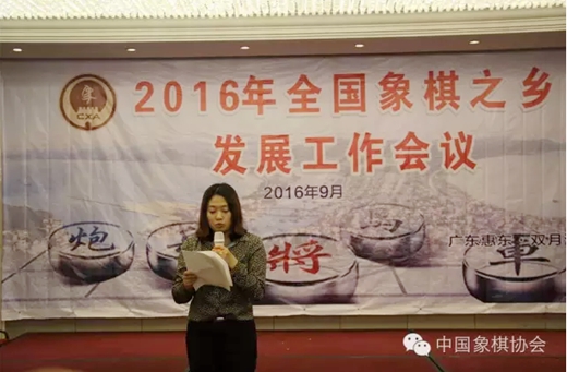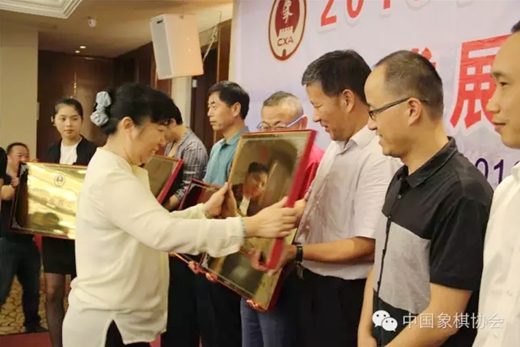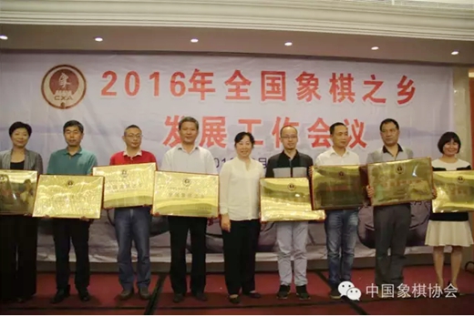 随后,各个象棋之乡代表汇报了本地区开展象棋普及推广、文化发展等方面的工作,郭莉萍秘书长宣读了《中国象棋协会关于授予“全国象棋之乡称号(2016-2020年)”的决定》,并由陈泽兰主席为9个象棋之乡授牌。