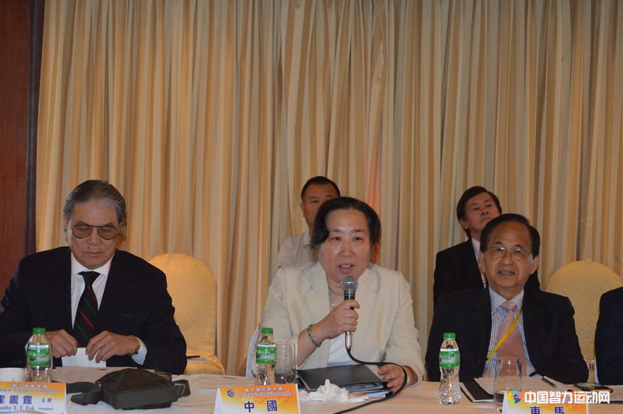 世界象棋联合会第一副主席陈泽兰正在讲话