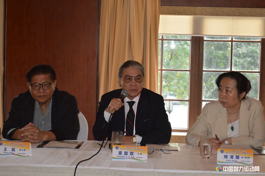 世界象棋联合会主席霍震霆正在讲话