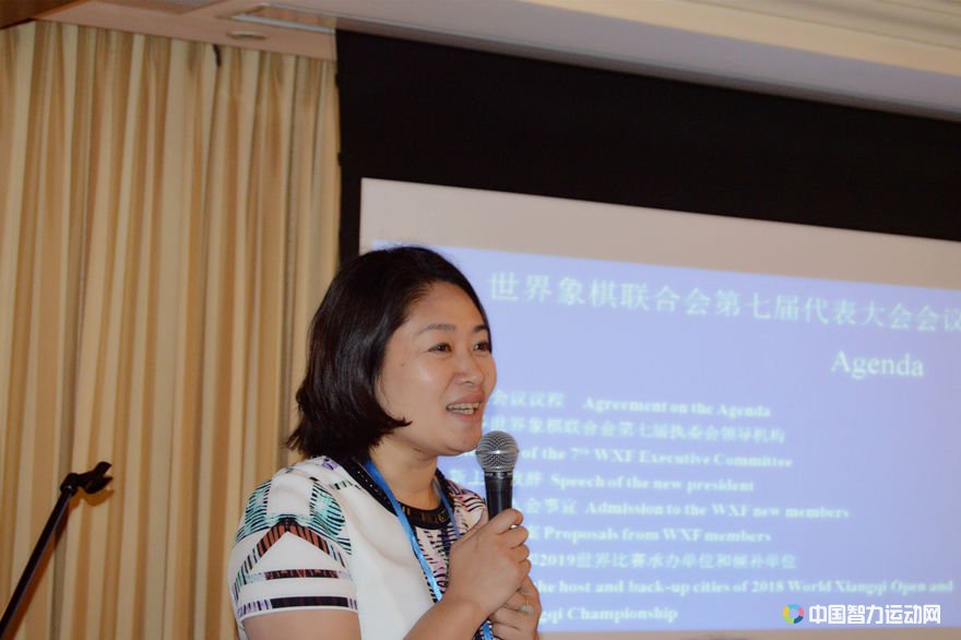 世界象棋联合会秘书长郭莉萍发言